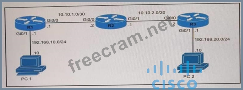 Question 2: Refer to the exhibit. Which type of route does R1 use to rea...