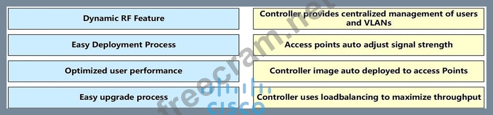Drag and drop the benefits of a cisco wireless Lan controller from the left onto the correct examples on the right.