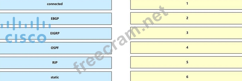 Drag each route source from the left to the numbers on the right. Beginning with the lowest and ending with the highest administrative distance.