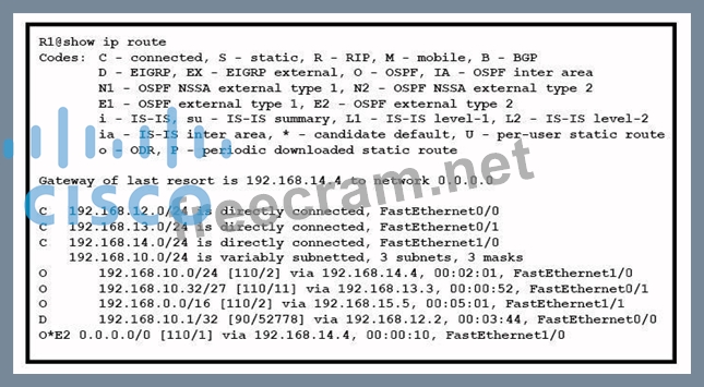 Question 14: Refer to the exhibit. How does router R1 handle traffic to 1...