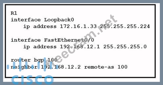 Refer to the exhibit. Which Command do you enter so that R1 advertises the loopback0 interface to the BGP Peers?