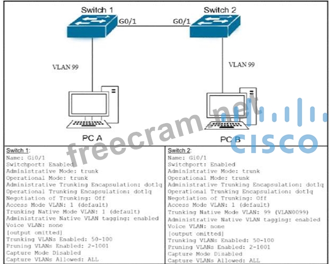After the switch configuration the ping test fails between PC A and PC B Based on the output for switch 1.