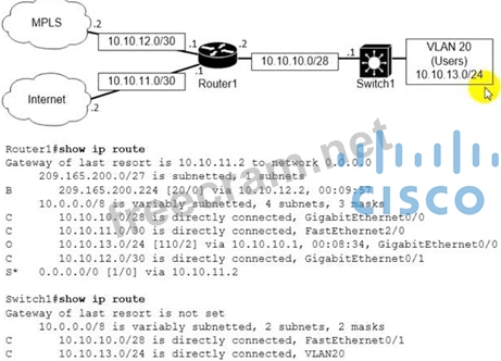 Question 70: Router R1 must send all traffic without a matching routing-t...