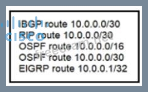 A router reserved these five routes from different routing information sources.
