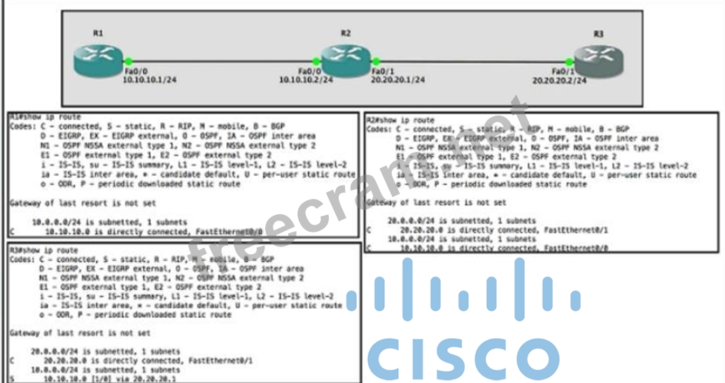 Question 23: Refer to the exhibit. (Exhibit) Which route does R1 select f...