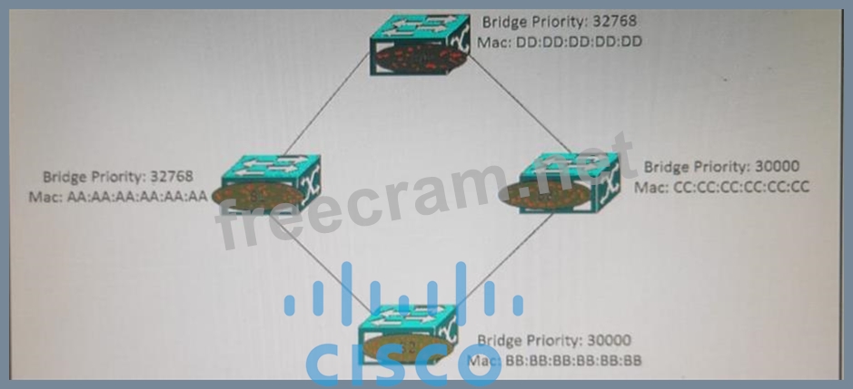 Question 70: Refer to the exhibit. (Exhibit) Which switch becomes the roo...