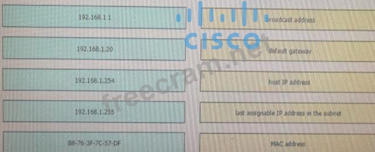 An engineer is tasked with verifying network configuration parameters on a client workstation to report back to the team lead. Drag and drop the node identifiers from the left onto the network parameters on the right.