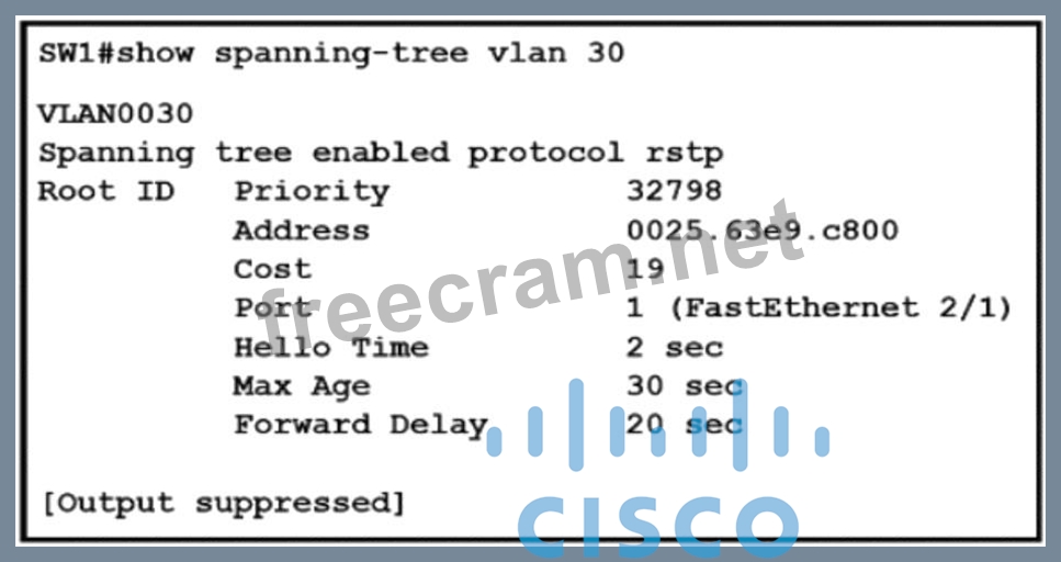 Question 22: Which configuration ensures that the switch is always the ro...