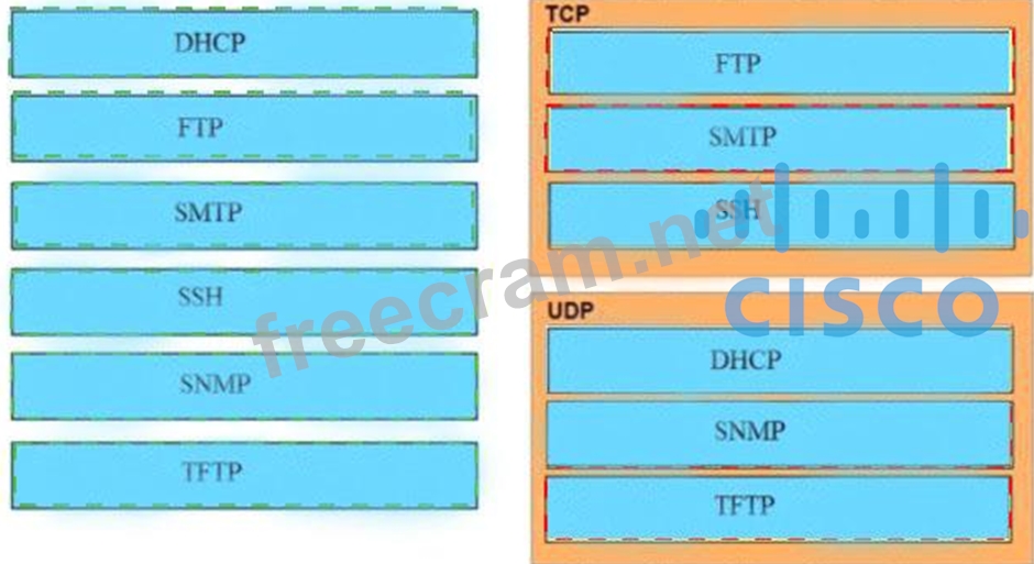 Question 218: Drag and drop the TCP/IP protocols from the left onto the tr...