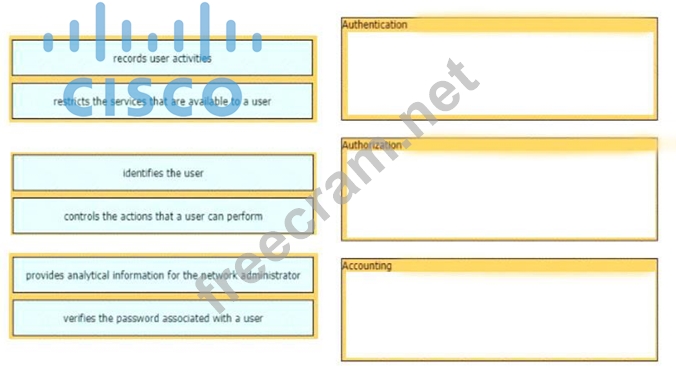 Question 67: Drag and drop the AAA functions from the left onto the corre...