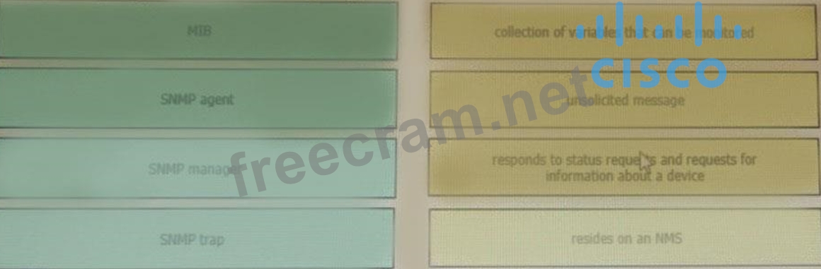 Question 83: Drag and drop the SNMP components from the left onto the des...