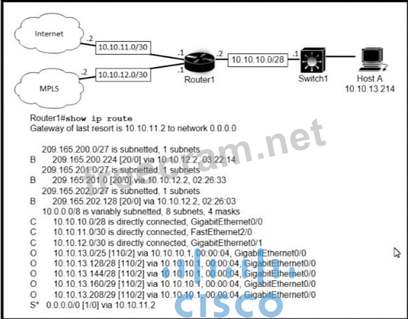 Question 39: (Exhibit) Refer to the exhibit. How does router R1 handle tr...
