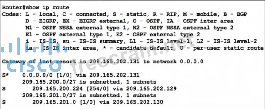 Question 12: Refer to the exhibit. (Exhibit) Which route type is configur...