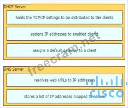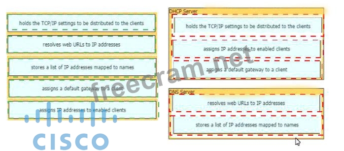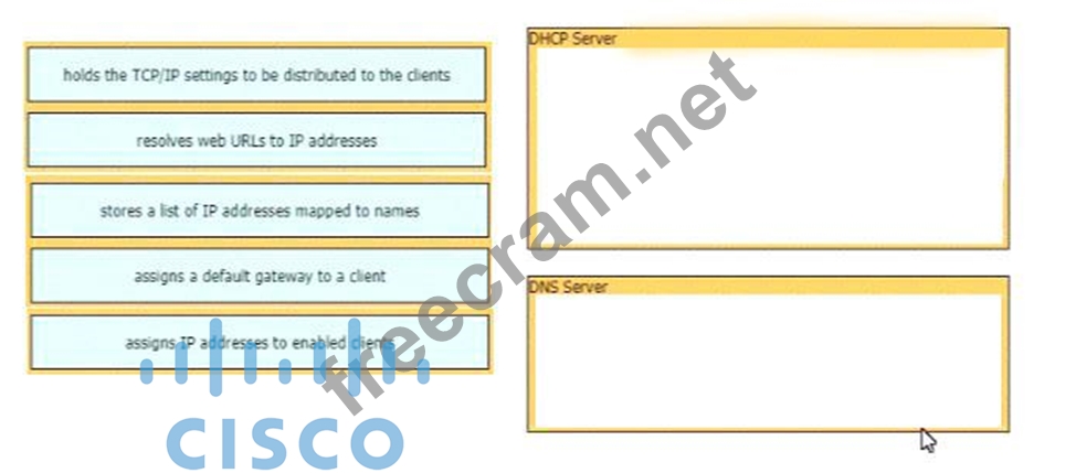 Drag and drop the functions from the left onto the correct network components on the right
