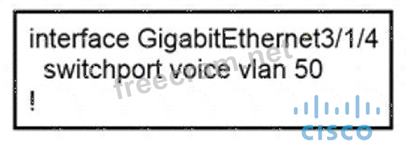 An administrator is tasked with configuring a voice VLAN. What is the expected outcome when a Cisco phone is connected to the GigabitEfriemet3/1/4 port on a switch?