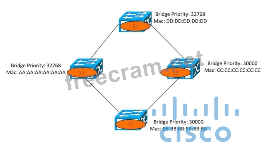 Question 8: Refer to the exhibit. (Exhibit) Which switch becomes the roo...
