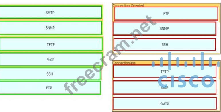 Drag and drop the network protocols from the left onto the correct transport services on the right.