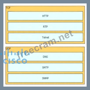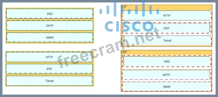 Question 26: Drag and drop the TCP/IP protocols from the left onto the tr...