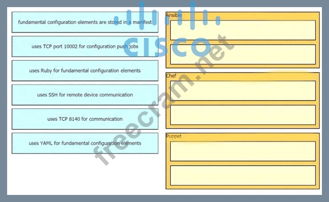 Drag drop the descriptions from the left onto the correct configuration-management technologies on the right.