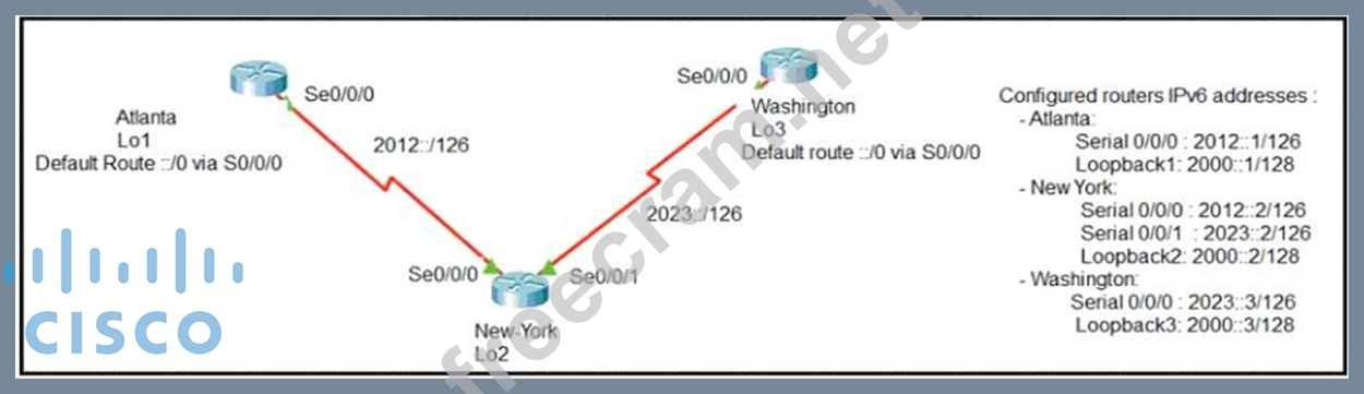 The loopback1 interface of the Atlanta router must reach the loopback3 interface of the Washington router.