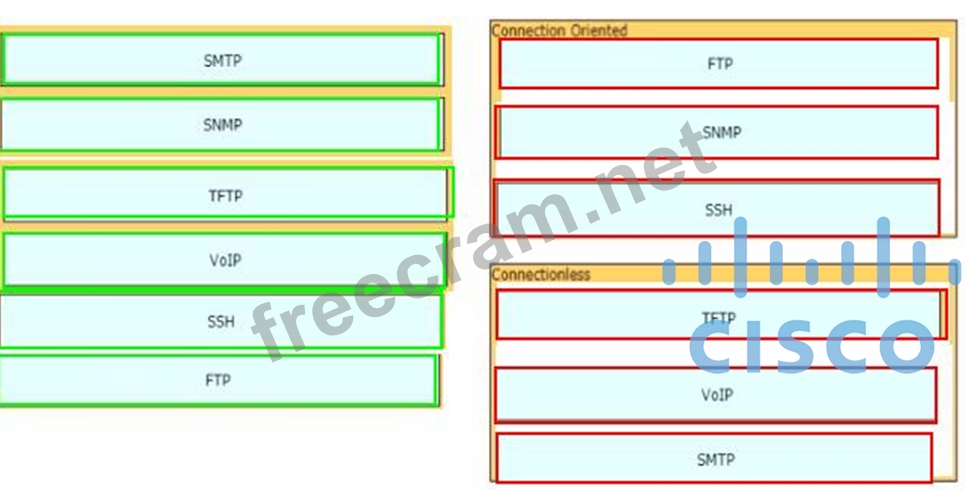 Drag and drop the network protocols from the left onto the correct transport services on the right.