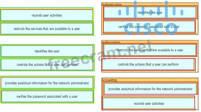 Question 84: Drag and drop the AAA functions from the left onto the corre...