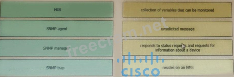 Question 50: Drag and drop the SNMP components from the left onto the des...