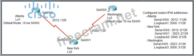The loopback1 interface of the Atlanta router must reach the loopback3 interface of the Washington router. Which two static host routes must be configured on the NEW York router? (Choose two)