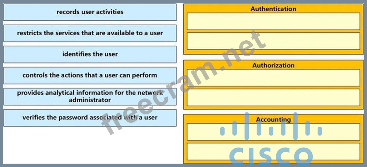 Question 192: Drag and drop the AAA functions from the left onto the corre...