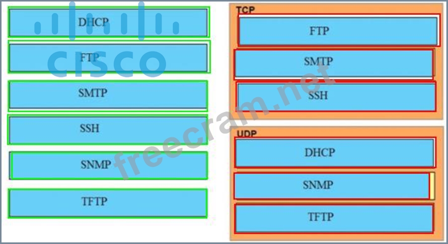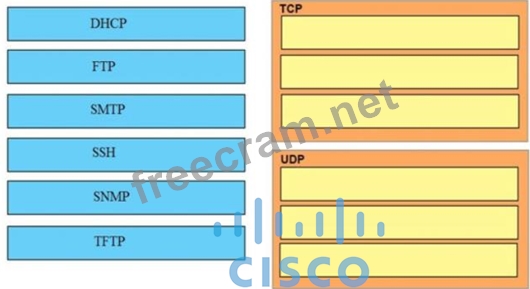 Question 26: Drag and drop the TCP/IP protocols from the left onto the tr...