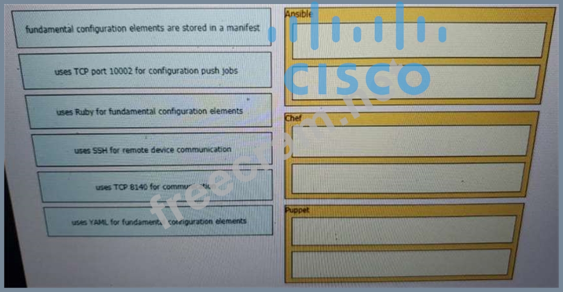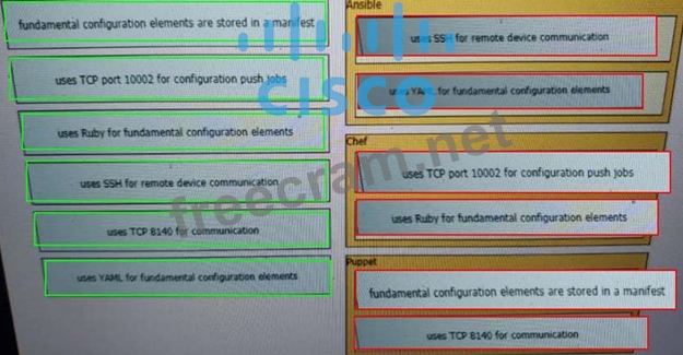 Drag and drop the descriptions from the left onto the configuration-management technologies on the right.