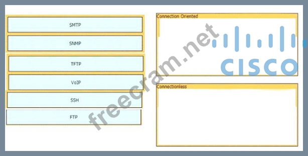 Drag and drop the network protocols from the left onto the correct transport services on the right.