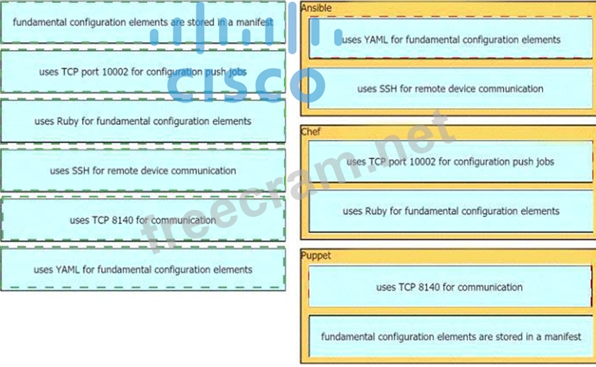Drag drop the descriptions from the left onto the correct configuration-management technologies on the right.