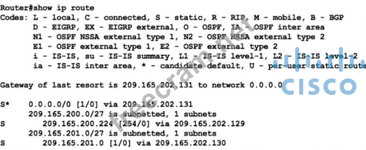 Question 33: Refer to the exhibit. (Exhibit) Which route type is configur...