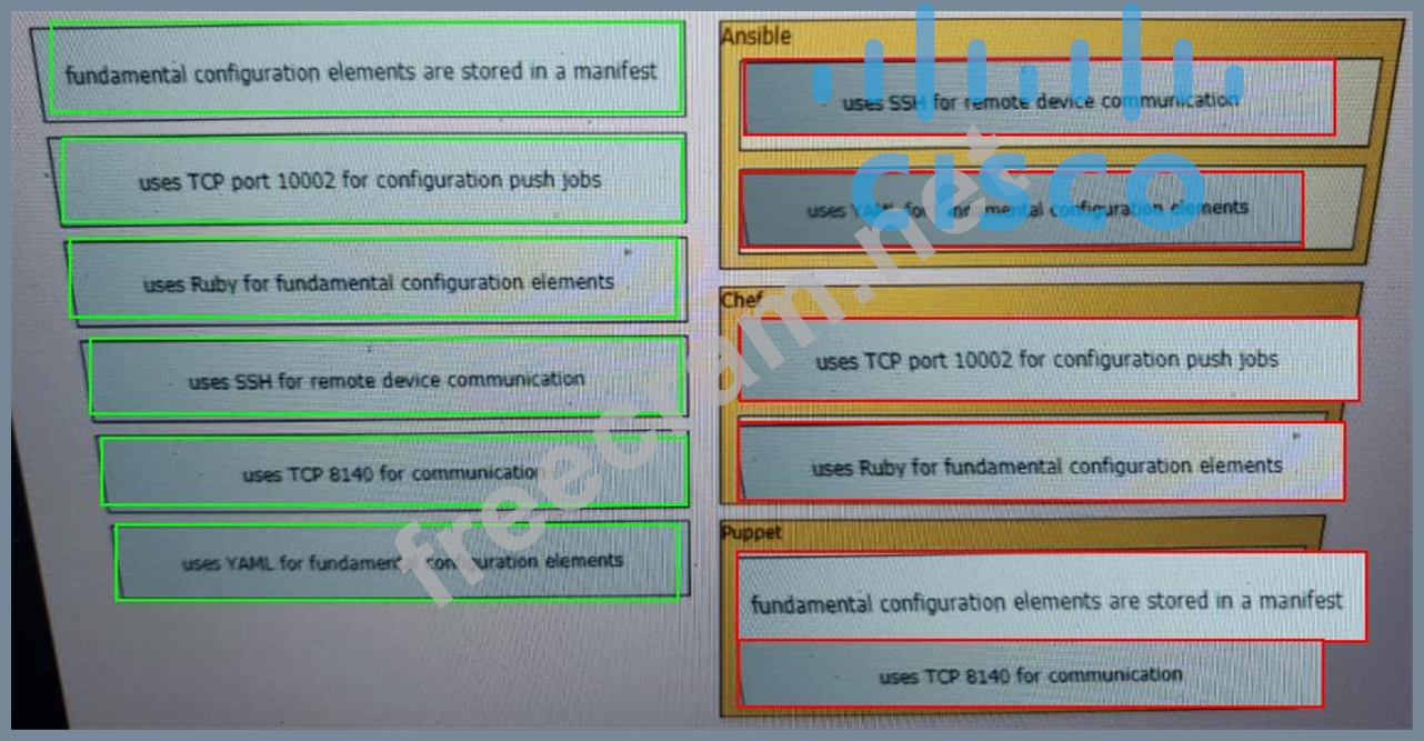 Drag and drop the descriptions from the left onto the configuration-management technologies on the right.