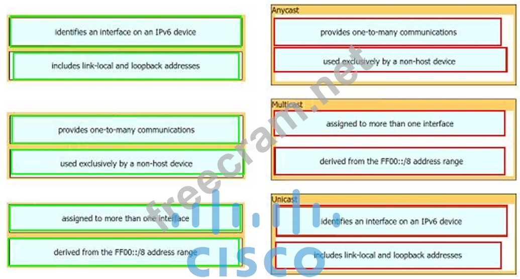 Drag and drop the IPv6 address details from the left onto the corresponding types on the right.