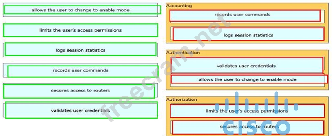 Drag and drop the descriptions of AAA services from the left onto the corresponding services on the right.