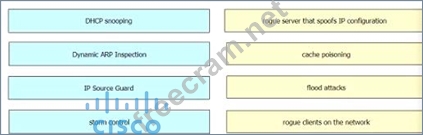 Drag and drop the Cisco IOS attack mitigation features from the left onto the types of network attack they mitigate on the right.