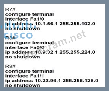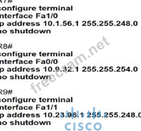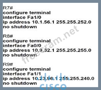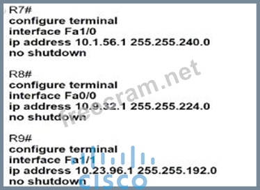 The answer is incorrect because in router R8 there are 248 host that can be resolved with a /25, the router R7 there are 1024 host that can be resoved with a /22, the answer correct is letter A