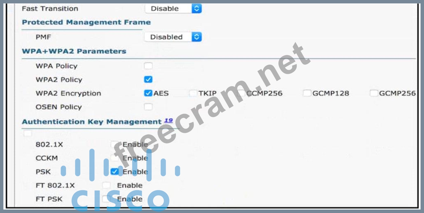 Question 25: An engineer must configure a WLAN using the strongest encryp...
