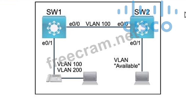 2. Configure Ethernet0/1 on SW2 to use the existing VLAN named Available.