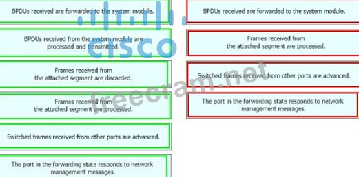 Drag and drop the Rapid PVST+ forwarding state actions from the left to the right. Not all actions are used.