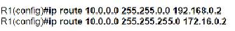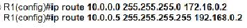 A network engineer must configure R1 so that it sends all packets destined to the 10.0.0.0/24 network to R3, and all packets destined to PCI to R2. Which configuration must the engineer implement?