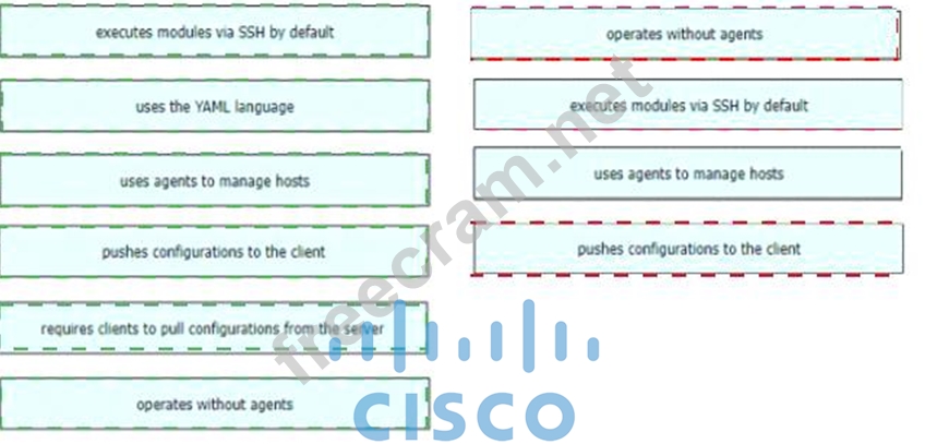 Drag and drop the Ansible features from the left to the right Not all features are used.