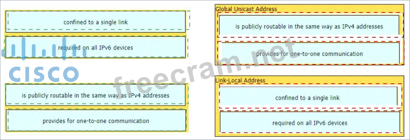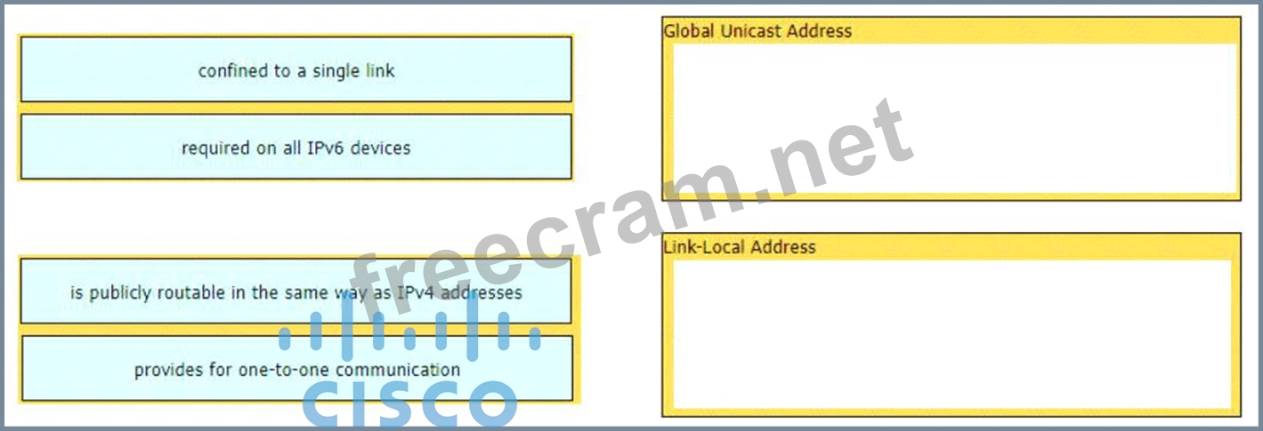 Drag and drop the characteristic from the left onto the IPv6 address type on the right.