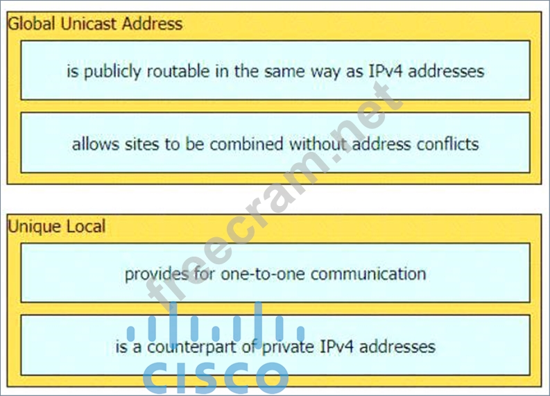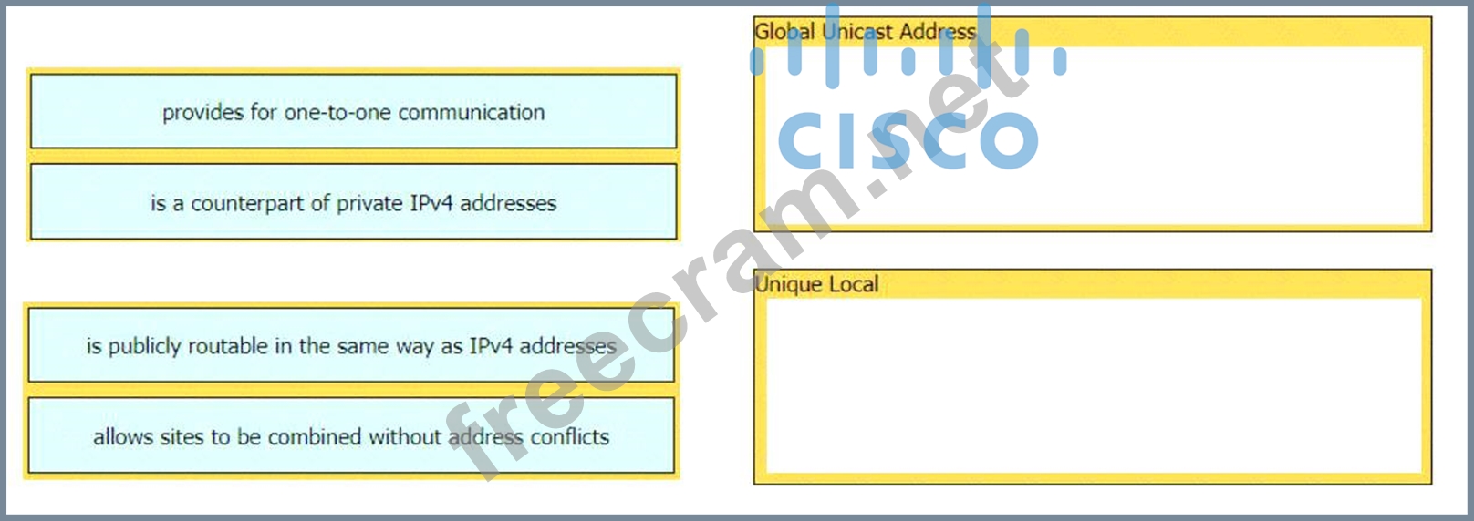 Drag and drop the characteristic from the left onto the IPv6 address type on the right.