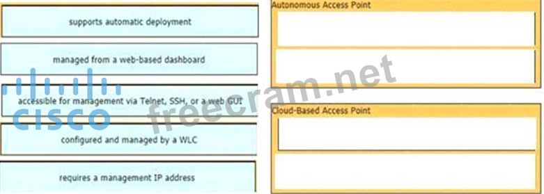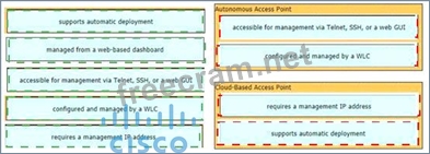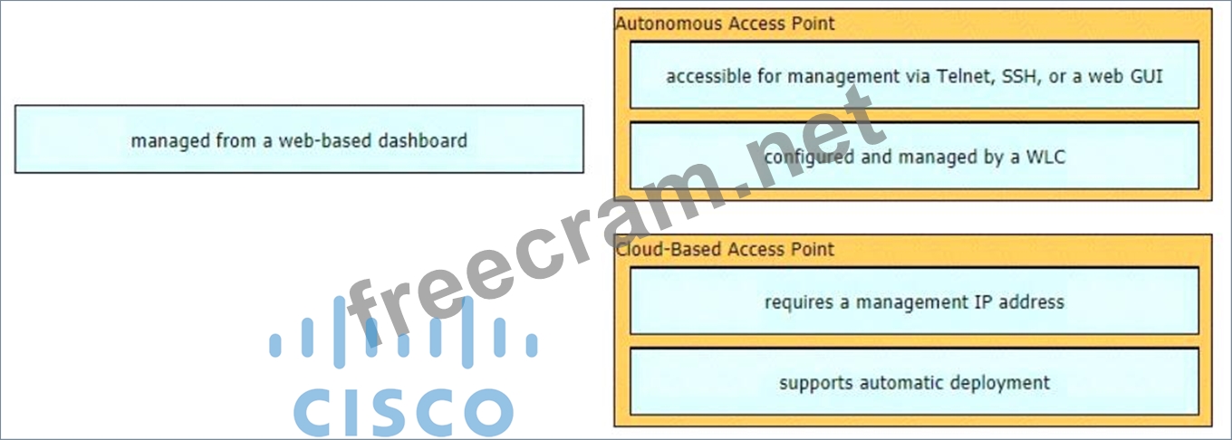 Drag and drop the facts about wireless architectures from the left onto the types of access point on the right.