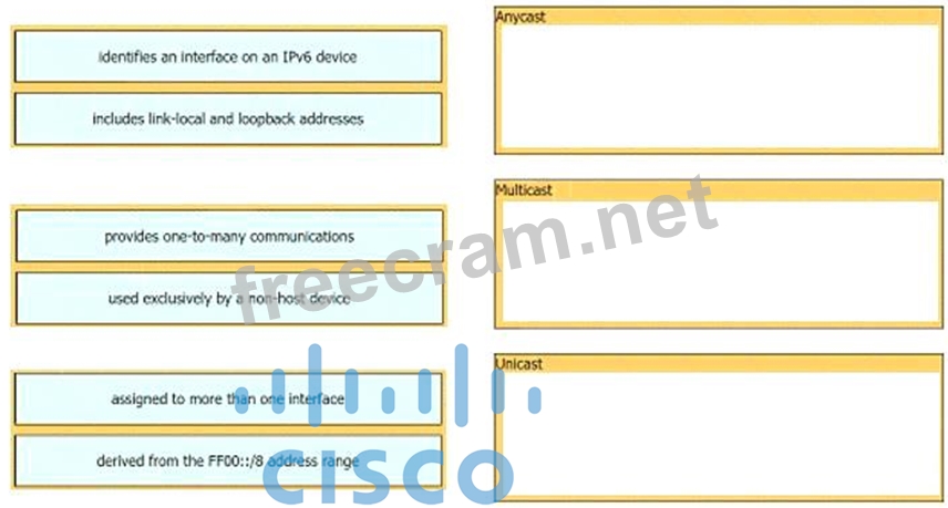 Drag and drop the IPv6 address details from the left onto the corresponding types on the right.