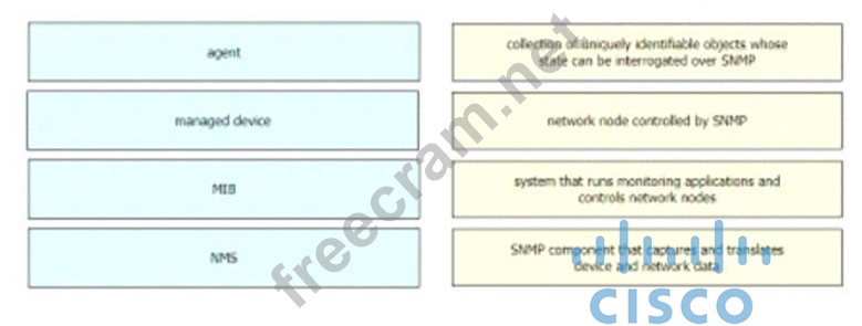 Question 69: Drag and drop the SNMP components from the left onto the des...