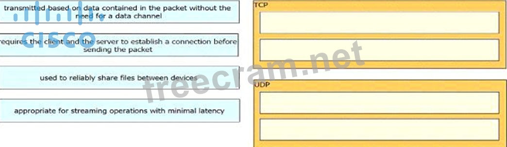 Drag and drop the TCP or UDP details from the left onto their corresponding protocols on the right.